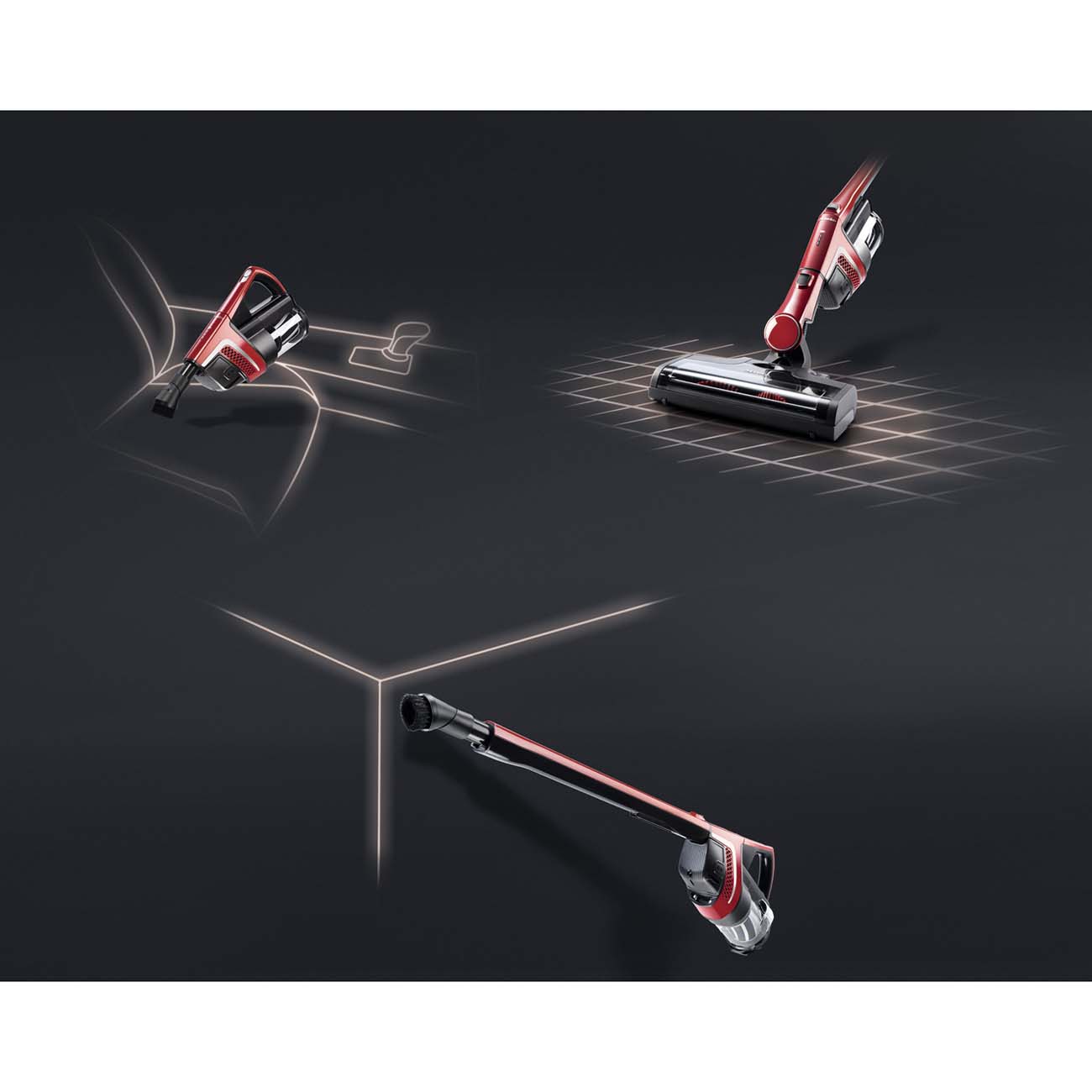 Положение блока питания PowerUnit можно менять. Размещение в нижней части устройства (режим Comfort) позволяет очищать напольные покрытия, в верхней (режим Reach) – обрабатывать потолки или вытягивать сор из труднодоступных мест, например, под мебелью. Кроме того, блок используется и отдельно: пылесос превратится в ручную модель (режим Compact) и будет удобен для быстрой уборки любых поверхностей.