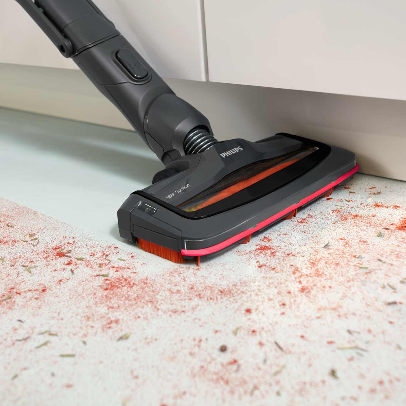 Ручной пылесос Philips FC6722/01 с двигателем PowerBlade и двумя режимами скорости обеспечивает быстрое удаление грязи на различных типах покрытий. Благодаря системе всасывания на 180 градусов вокруг прибор с лёгкостью справляется с мусором, забившимся в труднодоступные места.