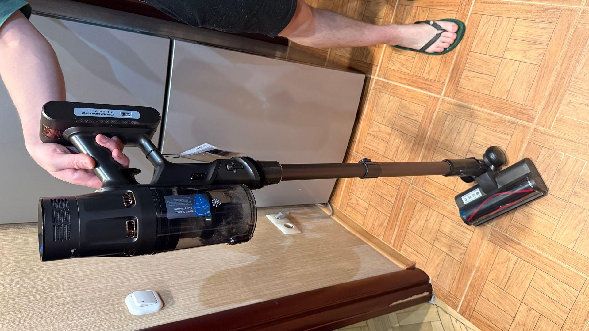 1. Пылесос имеет очень широкую комплектацию, что позволяет использовать его не только для обычной сухой уборки, но также для мытья пола и уборки в автомобиле. 2. Переключение между 4 режимами смарт, эко, средний и турбо осуществляется в 1 касание, очень удобно, разница в мощности между ними очень ощутимая, а в турборежиме мощность всасывания очень высокая для аккумуляторного пылесоса. Здесь же на табло есть цифровая индикация заряда батареи в процентах, очень удобно контролировать время работы. 3. Емкий аккумулятор на 4000 мАч обеспечивает длительное время работы, но надо отметить, что чем мощнее режим, тем быстрее садится пылесос. Так, я пылесосил системный блок на турбо режиме, за 3 минуты работы пылесос израсходовал 20 процентов заряда на максимальной мощности, получается полного заряда хватит примерно на 15 минут работы в турбо режиме, что отличный показатель для аккумуляторного пылесоса. В других режимах скорость расхода заряда значительно уменьшается, но, честно сказать, я не засекал время. Одного заряда полностью хватает для уборки квартиры 70 квадратных метров в смарт режиме и остается 15 процентов заряда. 4. Удобная система очистки контейнера одной кнопкой. 5. Не надо держать кнопку постоянно нажатой, одно нажатие пылесос включился, второе выключился, это критически важно при уборке в салоне автомобиля, а с гибким шлангом убирать авто очень удобно, если бы его не было, то пылесос бы мало где мог залезть, а с этим шлангом можно достать практически везде. 6. Контейнер легко разбирается для очистки предмоторный фильтр можно мыть водой, но перед установкой обязательно полностью просущить. 7. Не думал, что подсветка на турбощетке настолько полезна, намного лучше видно мелкий мысор и шерсть домашних животных на полу. 8. Общее качество изготовления оставляет приятные эмоции, детали чётко подогнаны, насадки садятся плотно, ощущение качественной вещи. 9. В наборе есть 5 вакуумных пакетов для хранения вещей, но я пока ими не пользовался.