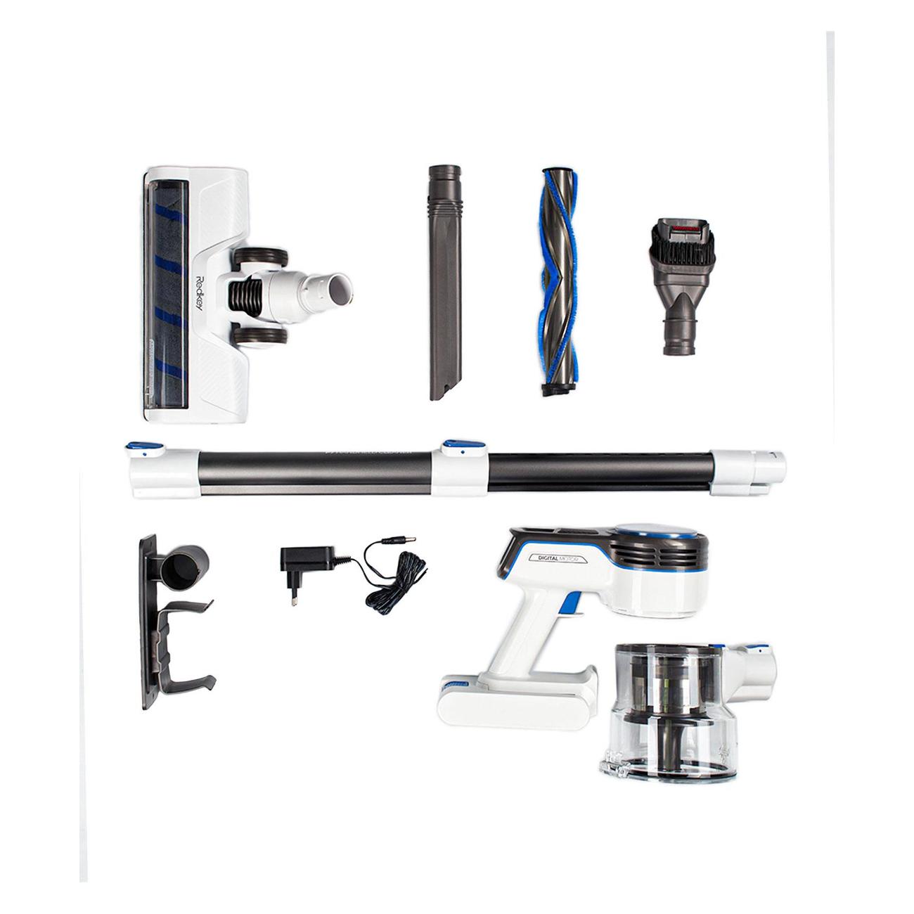 Пылесос Redkey P7 — прибор 2 в 1, который работает как вертикальный и ручной и выполняет сухую уборку. Питание обеспечивает аккумулятор емкостью 2600 мА*ч, который предоставляет до 40 минут автономности — убирать можно в любом месте, не завися от розетки. Зарядка производится от бытовой электросети 220 В, длина шнура — 1 м. На восстановление ресурса батареи требуется до 4 часов. Индикаторы показывают состояние аккумулятора и отображают процесс зарядки.