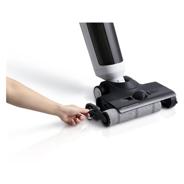 Мягкая роликовая щетка позволяет удалять даже стойкие загрязнения, кнопка распыления воды помогает размочить засохшие пятна. Технология обеззараживания уничтожает до 99% бактерий и вирусов. Всего предусмотрено три режима уборки: стандартная, обеззараживающая, режим всасывания жидкости. Роликовая щетка самостоятельно очищается, что освобождает от необходимости мыть ее вручную, система просушки исключает появление неприятного запаха.