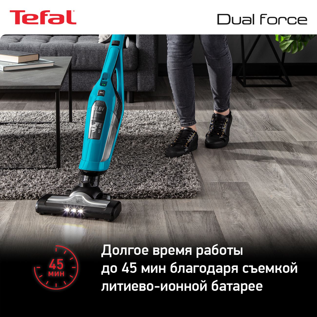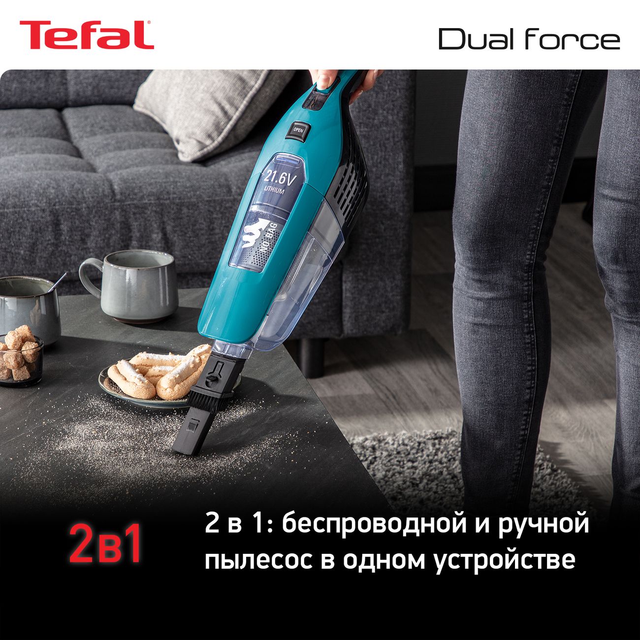 Tefal Dual Force 2in1 TY6751WO – ручной пылесос, предназначенный для сухой уборки. С его помощью вы легко и быстро очистите комнаты от пыли и мелкого мусора. Он оборудован электрощёткой с LED-подсветкой, обеспечивающей отличный результат на всех поверхностях, в углах и щелях, а также под мебелью.