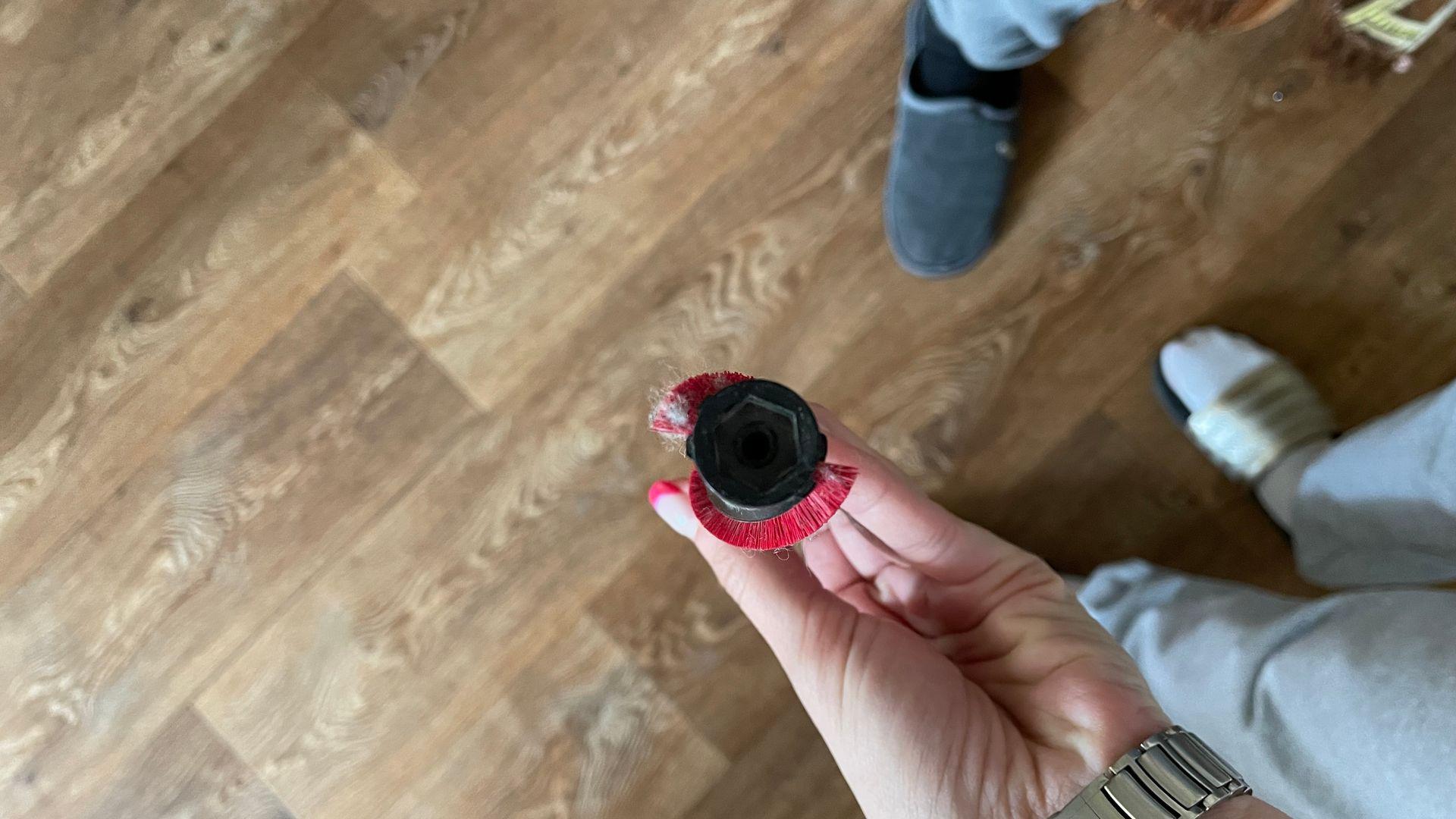 Удобный в использовании. быстрая сборка, хорошее всасывание пыли. Очень хорошо, что батарею можно заряжать от сетевого зарядного устройства. Плотный пластик для пылесборника, довольно приличный объём ( можно мыть), так же пылесборник имеет стакан из тканного материала, можно постирать после использования. У насадки турбо - щеточку можно снять и очистить от волос, ниток.