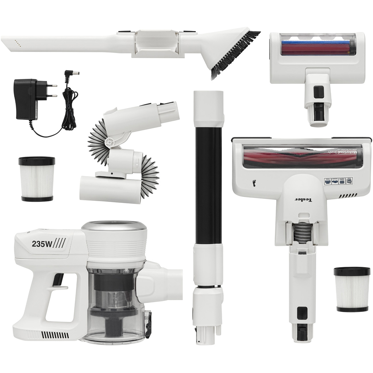 Ручной пылесос Tesler Pure Storm 5000 — многофункциональное устройство, которое может быть использовано не только в квартире, но и в салоне автомобиля. Пылесос работает от бесколлекторного мотора с мощностью 235 Вт и силой всасывания 22 кПа. За питание отвечает аккумулятор емкостью 2200 мА*ч, который полностью заряжается за 4,5 часа и обеспечивает до 40 минут автономности.