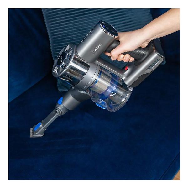 Источником питания служит литий-ионная батарея (Li-Ion) с высокой плотностью энергии и низким уровнем саморазряда. Время непрерывной работы — до 35 минут. Чтобы полностью зарядить аккумулятор, требуется около 240 минут. Рабочее напряжение батареи — 22,2 В. Пылесос снабжен индикацией режима работы.