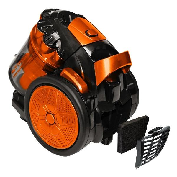 Корпус пылесоса выполнен из пластика оранжевого и черного цветов. На телескопической ручке размещен регулятор мощности. Предусмотрена горизонтальная и вертикальная парковка. Маневренные колеса обеспечивают поворот на 360°. Вес пылесоса равен 7 кг. Компактный размер (29х39х28 см) позволяет легко хранить устройство после уборки.