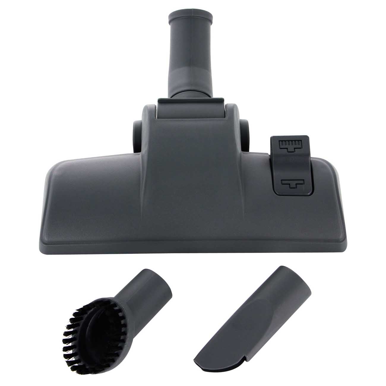 Основная насадка снабжена переключателем «пол-ковёр», что позволит вам очищать и гладкие покрытия, и ворсовые. А ещё в комплект входит щётка для мебели и других предметов интерьера и щелевое сопло, которое вытянет пыль из труднодоступных мест: щелей вдоль плинтусов, радиаторов отопления, складок между диванными подушками и т.п.