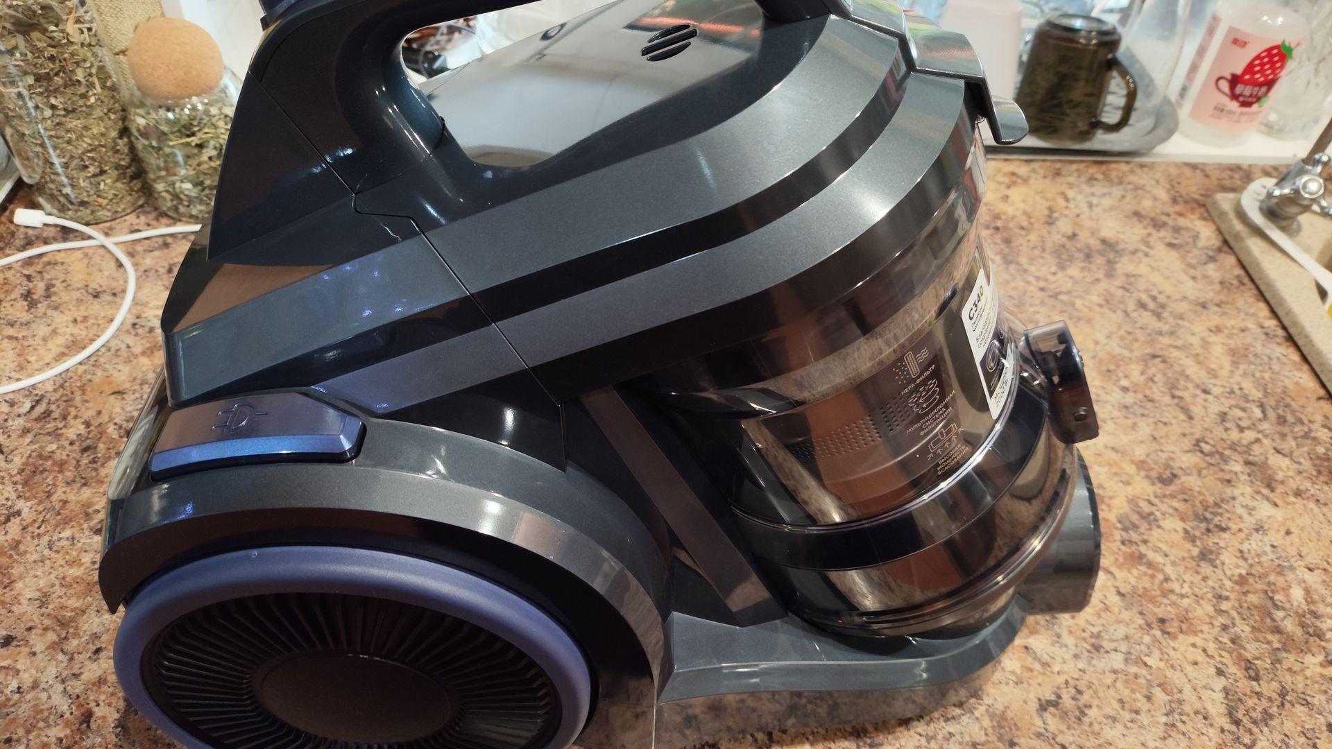 Искали мощный пылесос, перебрали множество вариантов разных брендов. Исходя из характеристик, отзывов и рекомендаций консультантов магазина, выбрали этот. Первая уборка прошла максимально удачно! Пропылесосили мебель, ковры, паркет. Со всеми задачами ( шерсть собаки, пыль) пылесос справился без нареканий. Нужно отметить, что при отличной мощности пылесос не шумный. Чистится очень удобно.