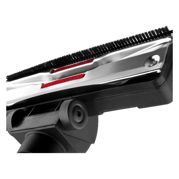 Пылесос оснащен телескопической трубкой из прочного металла, длину которой можно регулировать. Корпус изготовлен из качественного пластика, устойчивого к износу. Для перемещения предусмотрена ручка.