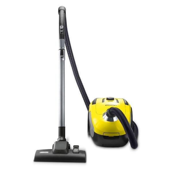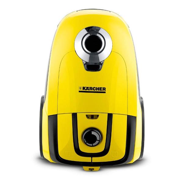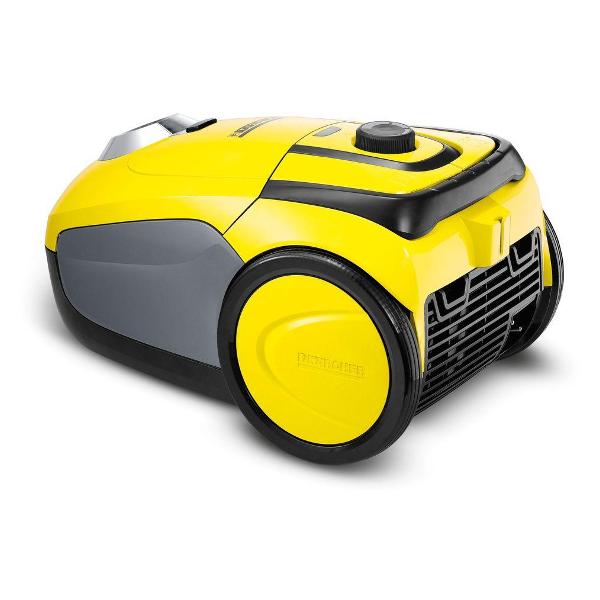 Пылесос с пылесборником Karcher VC 2 желтого цвета с черными элементами оснащен двигателем мощностью 700 Вт. Максимальный уровень шума — 76 дБ. Механическая система управления работает с помощью кнопки включения, кнопки автосматывания шнура, поворотного регулятора мощности. Мощность всасывания достигает 180 Вт. На корпусе расположены индикаторы выбранной мощности, заполнения пылесборника. Фильтр-мешок для мусора из флиса обладает объемом 2,8 л, он бесконтактно чистится. Система фильтрации представлена НЕРА-фильтром 12 для фильтрации мелких частиц пыли. Корпус снабжен ручкой для вертикального перемещения, транспортировочными колесами. Доступна горизонтальная парковка.