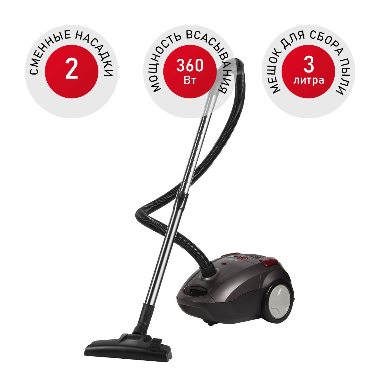 Стильный дизайн. Хороший мощный функционал. Есть фильтр очищающий. Многоразовые сборник для пыли.