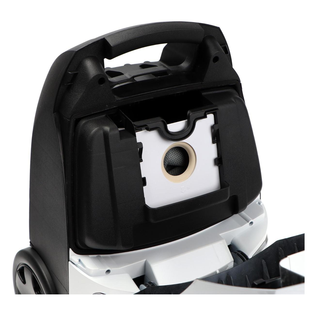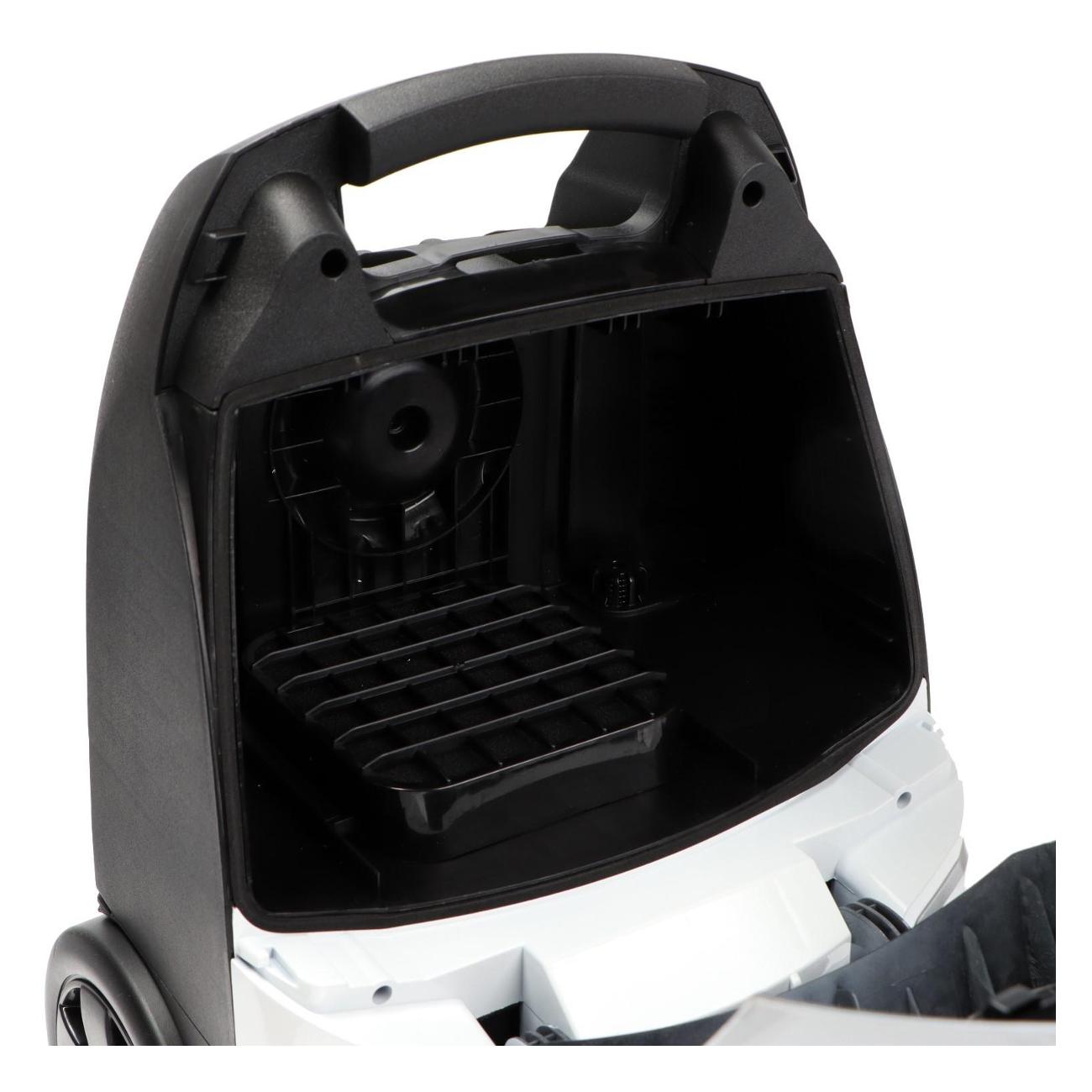 Пылесос с пылесборником Sakura SA-8316W оснащен стандартным двигателем, который обеспечивает мощность всасывания 450 Вт. Для подключения прибор снабжен кабелем длиной 4,5 м. Вместимость мешка для мусора — 4 л. Встроенный индикатор показывает степень его заполнения. Режим работы устройства выбираются с помощью регулятора на ручке и корпусе.