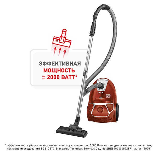 Пылесос Tefal TW3953EA серии Compact Power оснащен текстильный пылесборником объемом 3 л. Корпус сделан из пластика, оформлен в красном и сером цветах, телескопическая трубка выполнена из металла. Для подключения к сети используется кабель длиной 8,8 м.