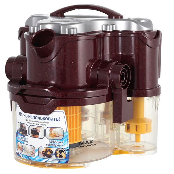 В ёмкости для воды предусмотрен рычаг, обеспечивающий быстрый слив. Кроме того, она имеет особую конструкцию, обеспечивающую одновременное наполнение всех камер. Фильтр HEPA рассчитан на многоразовое использование – для очистки достаточно промыть его под струёй проточной воды.