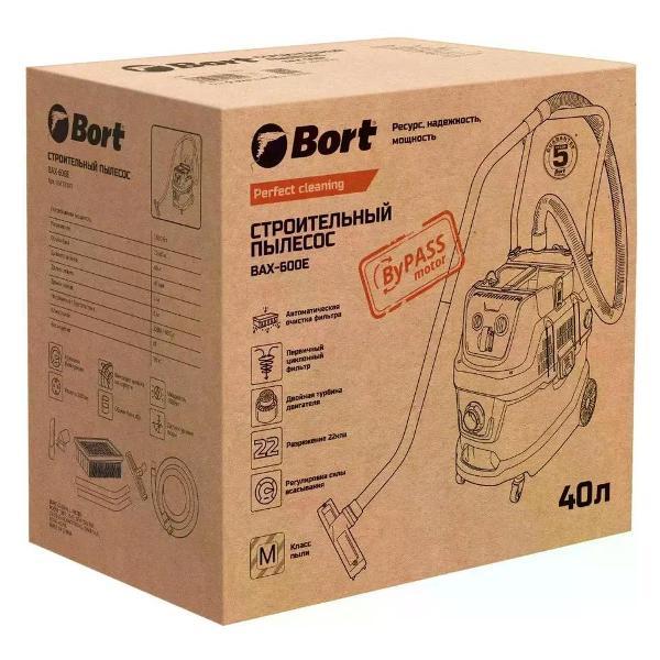 Вы можете купить Пылесос строительный Bort BAX-600E в магазинах М.Видео по доступной цене. Пылесос строительный Bort BAX-600E: подробное описание, фото и отзывы реальных покупателей, характеристики, возможность скачать инструкции и подобрать аксессуары.