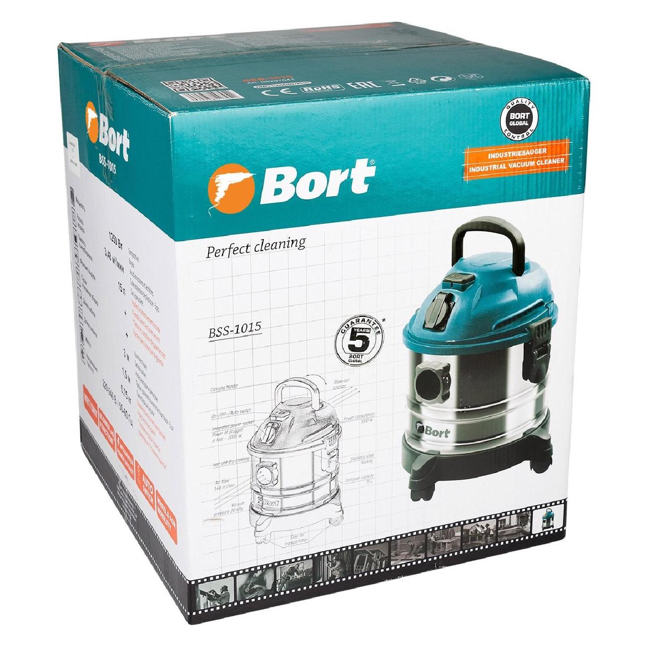 Строительный пылесос Bort BSS-1015 — модель в ударопрочном корпусе из нержавеющей стали, характеризующейся устойчивостью к механическим повреждениям. Устройство с максимальной потребляемой мощностью 1250 Вт подходит для сухой и влажной уборки. Уровень шума в процессе эксплуатации не превышает 75 дБ.
