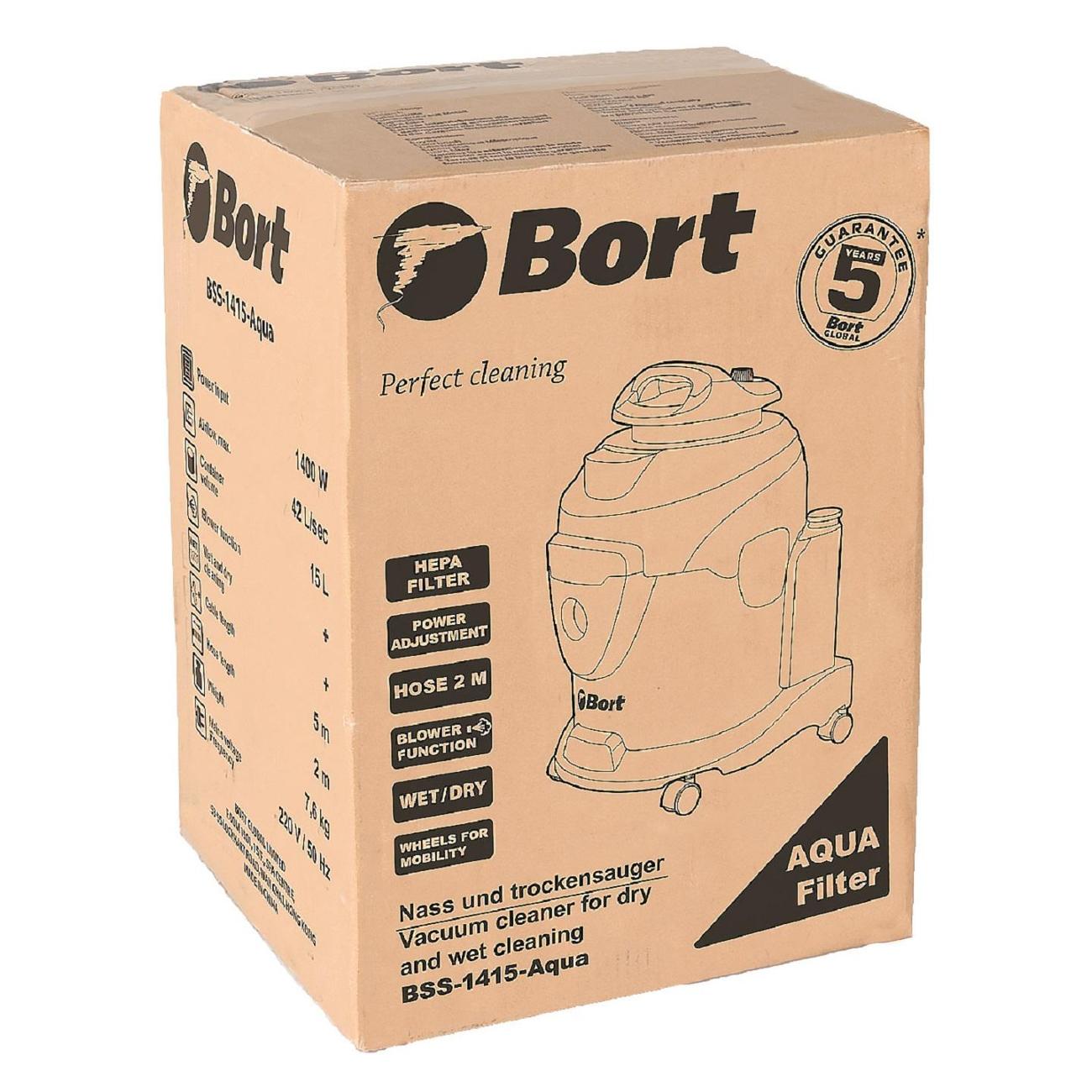 Строительный пылесос Bort BSS-1415-Aqua выполнен в корпусе из ударопрочного пластика, используется для сухой и влажной уборки. В модель заложены функции выдува воздуха и всасывания жидкости. Прибор эффективно удаляет загрязнения после ремонта, строительства и отделки помещений, позволит быстро навести порядок в большом доме или офисе. К сети устройство подключается с помощью кабеля длиной 5 м. На корпусе предусмотрено крепление для наматывания шнура.