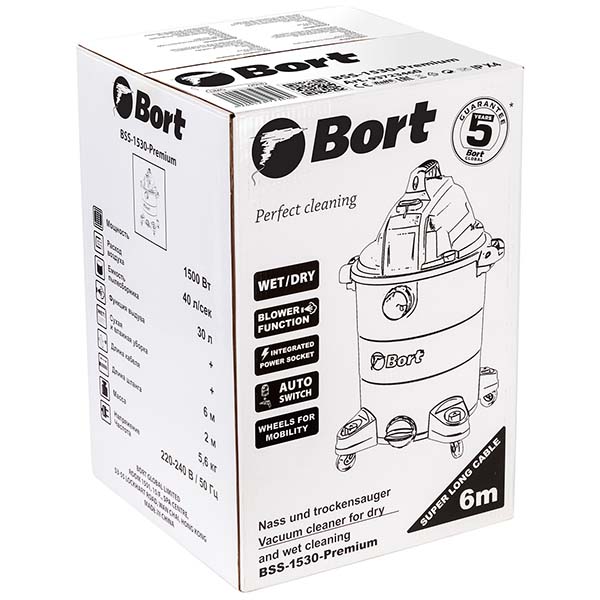 Bort BSS-1530-Premium – пылесос, незаменимый во время строительных работ. Модель без проблем справляется с различными типами сухих загрязнений, образующимися после шлифовки, перфорирования, резки и так далее. Кроме того, прибор избавит помещения и от пролитых жидкостей, то есть он по-настоящему универсален.