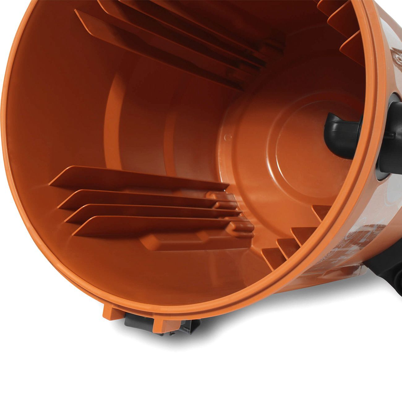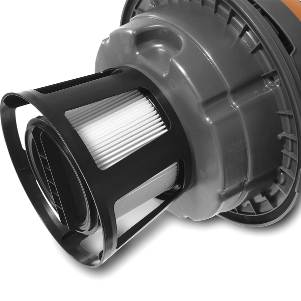 Пылесос работает от двигателя мощностью 2,5 кВт и двух турбин, которые задействуются в режиме максимальной производительности, для переключения предусмотрен отдельный регулятор. Система фильтрации состоит из предварительного фильтра, который способен удерживать частицы цемента, и HEPA-фильтра для удержания мельчайших частиц. Емкость бака для сбора мусора — 60 л.
