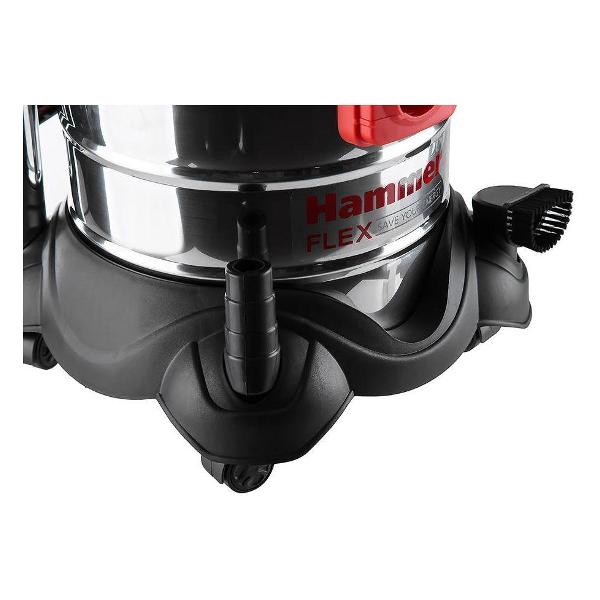 Промышленный пылесос Hammer PIL20A обладает мощностью 1400 Вт и эффективно собирает строительную пыль, опилки, кирпичную крошку и тому подобный мусор. Кроме того, возможно всасывание жидкости. Прибор пригодится не только на строительной площадке, но и для уборки помещений после ремонта. Объем резервуара составляет 20 л.