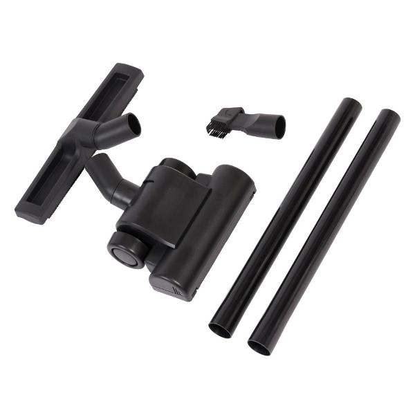Объем бака, которым оснащен пылесос, равен 20 л. Всасывающий шланг длиной 2 м обладает диаметром 32 мм. Предусмотрена функция выдувания, благодаря которой обеспечивается легкое и быстрое удаление застрявших частичек мусора. Небольшие колеса служат для перемещения оборудования по обслуживаемой площадке. Мощность потребления — 1200 Вт. Для подключения к сети используется 3,9-метровый кабель. В комплект входят пять сменных пылесборников и три насадки: для сбора жидкости, насадка-щетка и для пола и ковров. Размеры модели — 48х35х35 см, вес — 7 кг.