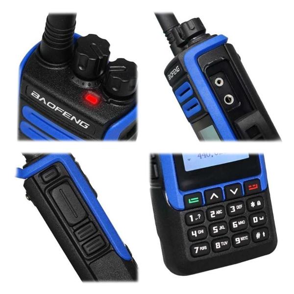 Рация Baofeng BF-H7 Blue мощностью 10 Вт оснащена ЖК-дисплеем с подсветкой. Предусмотрена индикация включения, частоты, блокировки, уровня заряда аккумулятора, низкого уровня заряда. Брызгозащищенный пластиковый корпус относится к IPX4-классу. Корпус снабжен механизмом для поясного крепления, фонариком и разъемом 3,5 мм для выносного динамика.