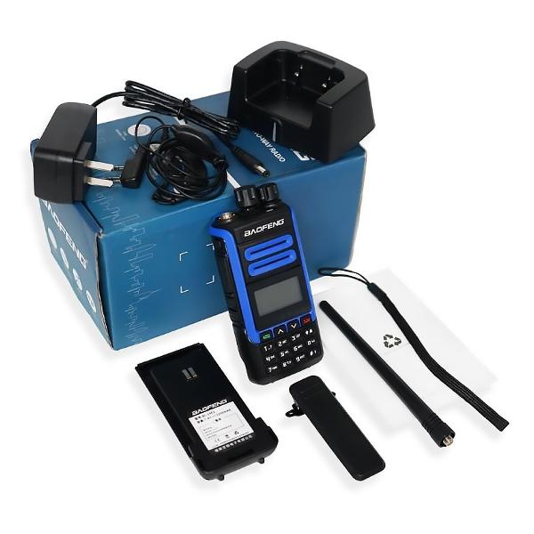 Габаритные размеры — 115x58x35 мм. Вес рации составляет 280 г. Прибор предназначен для использования с дальностью действия до 10 км в диапазоне температурного режима от -20°С до 60°С. В комплекте: зарядное устройство, проводная гарнитура, шнурок для переноски, антенна.