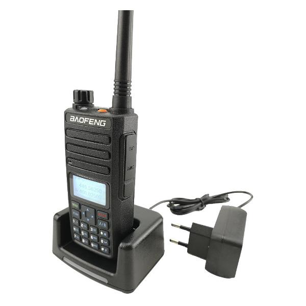 Рация Baofeng DR-1801UV DM-1801 в корпусе черного цвета поддерживает следующий диапазон частот: VHF 136-174, UHF 400-480. Максимальная дальность действия сигнала составляет 13 км. Выходная мощность рации — 1000 мВт. Тип модуляции — 4FSK. Модель работает в цифровом режиме MR Tier I & Tier II.