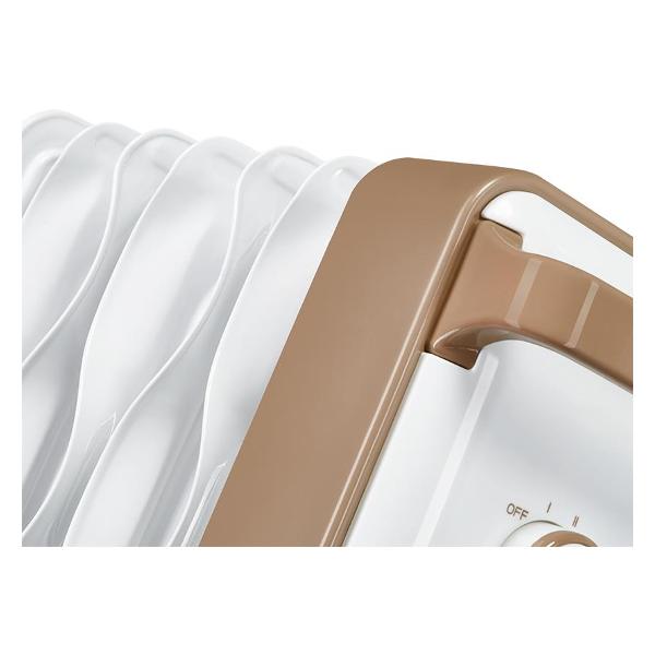 Масляный радиатор Electrolux EOH/M-9157 белого цвета с семью секциями оснащен колесиками и удобной ручкой для перемещения. Корпус сделан из металла. Внутри экологичное и безопасное масло, прошедшее многоступенчатую очистку. Температура и режим регулируются с помощью поворотной ручки. Габариты модели — 65х25х35,5 см. Вес — 9,9 кг. Мощность при максимальной температуре равна 1,5 кВт. Способ управления — механический. Прибор автоматически отключается при перегревании или опрокидывании. Работает от сети. Длина шнура — 1,5 м.