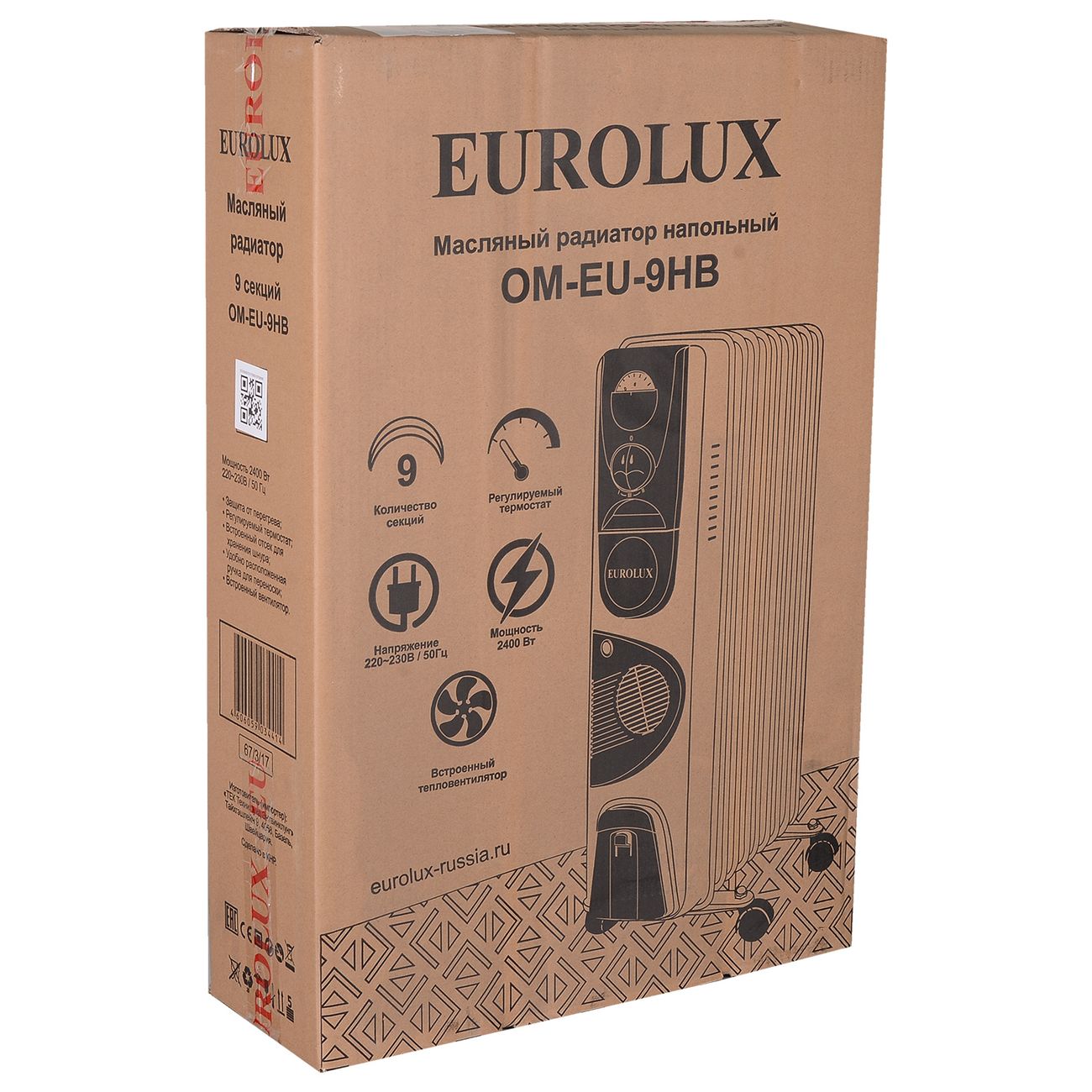 Радиатор масляный Eurolux ОМ-EU-9НВ рассчитан на применение в помещении площадью до 30 кв. м при высоте потолка до 2,6 м. Встроенный термостат позволит контролировать температуру окружающей среды и поддерживать ее на оптимальном уровне. В случае, если показатели будут ниже заданной нормы, он сам активирует нагрев, а затем, после достижения необходимого значения, отключит его.