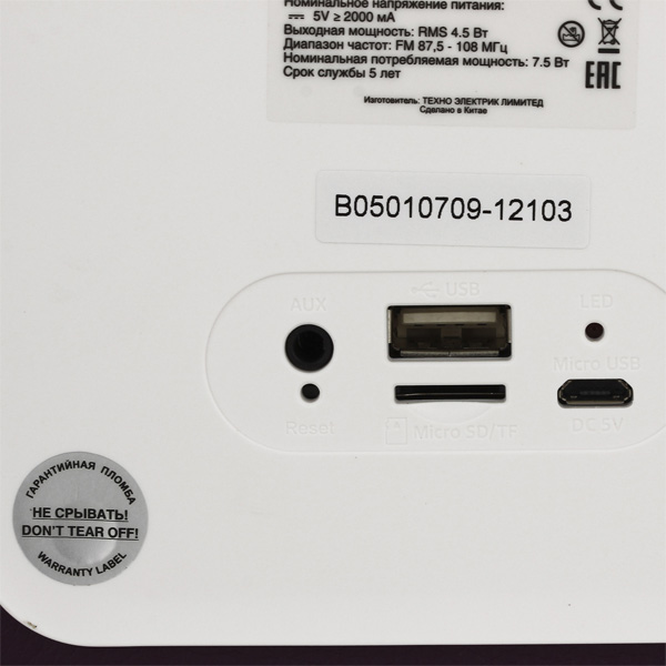 Адаптер питания подключается через microUSB, при его отключении сохраняются: Время, дата, отсканированные станции. При вкл. из спячки отображает часы далее выбирайте источник кнопкой Mode. Помнит последние файлы для каждого источника звука и последнюю станцию. Источники: Blutuse, Радио, SD до 32Gb, USB. Низы здесь особо искать не стоит т.к. "радио для кухни" на средней громкости звук вполне приемлемый для такого девайса. Для комнаты взял бы муз. центр (micro, mini или др.)