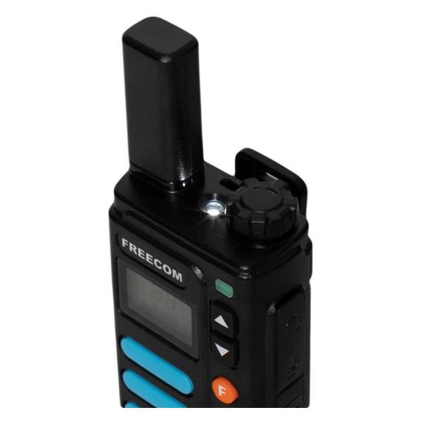 Радиостанция Freecom MT-777 Black действует на рабочей частоте 400-470 МГц, 99 каналах диапазона PMR446. Дальность действия в помещении достигает 2000 м. Функционал устройства включает в себя автоматическое отключение, звуковой сигнал при нажатии клавиш и завершении трансляции, опции монитора и радионяни, шумоподавления и кнопку аварийных каналов. Предусмотрена возможность голосовой активации, сканирования занятых каналов, режим «нажми и говори» и бесшумный режим. Панель управления дает изменять уровни громкости и мощности.