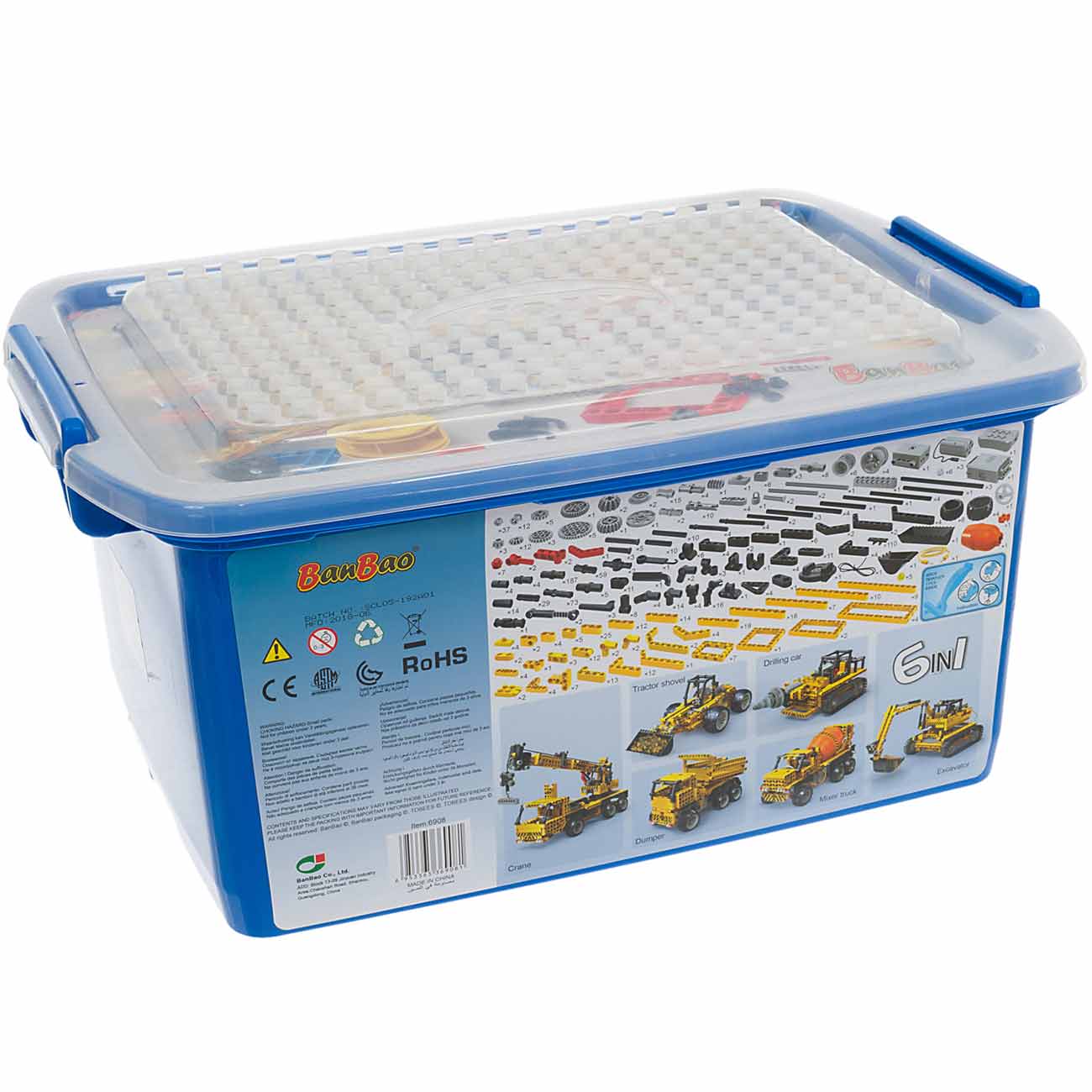 Конструктор BanBao 6908 состоит из 1080 пластиковых деталей, трёх моторов и радиоблока, с помощью которых можно создать и привести в движение шесть интерактивных моделей. В процессе игры ребёнок получит наглядное представление об устройстве сложных механизмов, разовьёт логическое и творческое мышление.