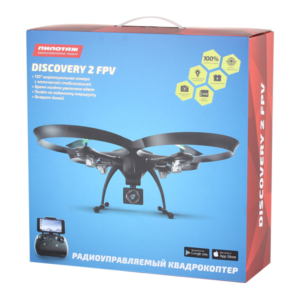 Pilotage Discovery 2 FPV – радиоуправляемый квадрокоптер, оборудованный широкоугольной HD-камерой. Он транслирует видео в режиме реального времени по Wi-Fi на ваш смартфон или планшет и может использоваться для полётов с обзором от первого лица как в помещении, так и на открытом воздухе. Также вы можете снимать фотографии, которые сохраняются на карту microSD.