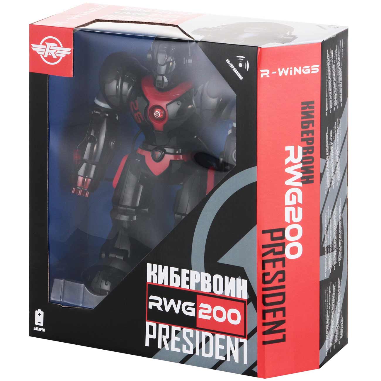 Радиоуправляемый робот R-Wings RWG200 предназначен для участия в увлекательных сражениях. Он способен ходить, стрелять мини-ракетами из руки, исполнять победный танец, произносить слова и фразы на «машинном языке», а также подавать световые сигналы. Объединив несколько роботов, можно устроить зрелищную битву.