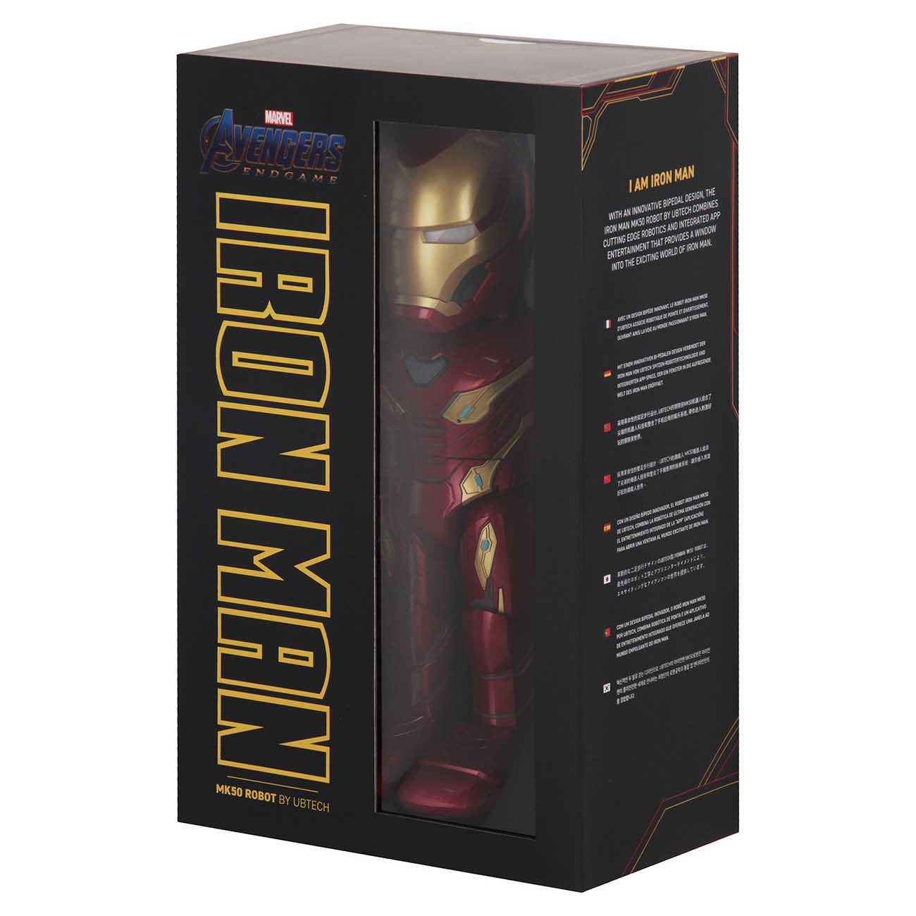 Мобильный контроль позволяет управлять движениями головы, туловища, ног и рук Тони Старка. Но герой вселенной Marvel может не только позировать: его богатая на сарказм речь пользуется не меньшей славой!