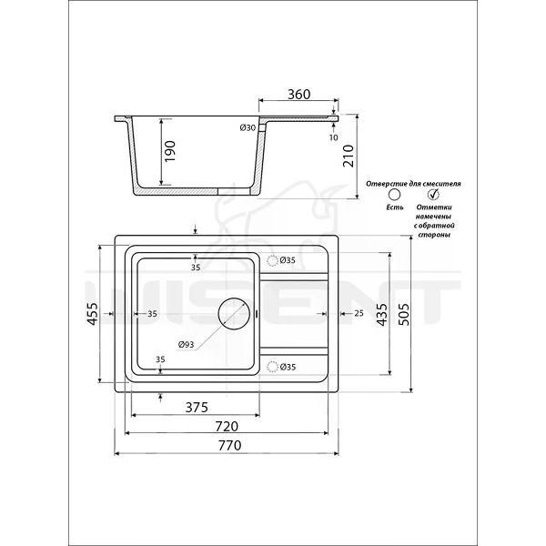 Размер мойки: 770 × 505 × 210 мм (допуск ±5 мм)