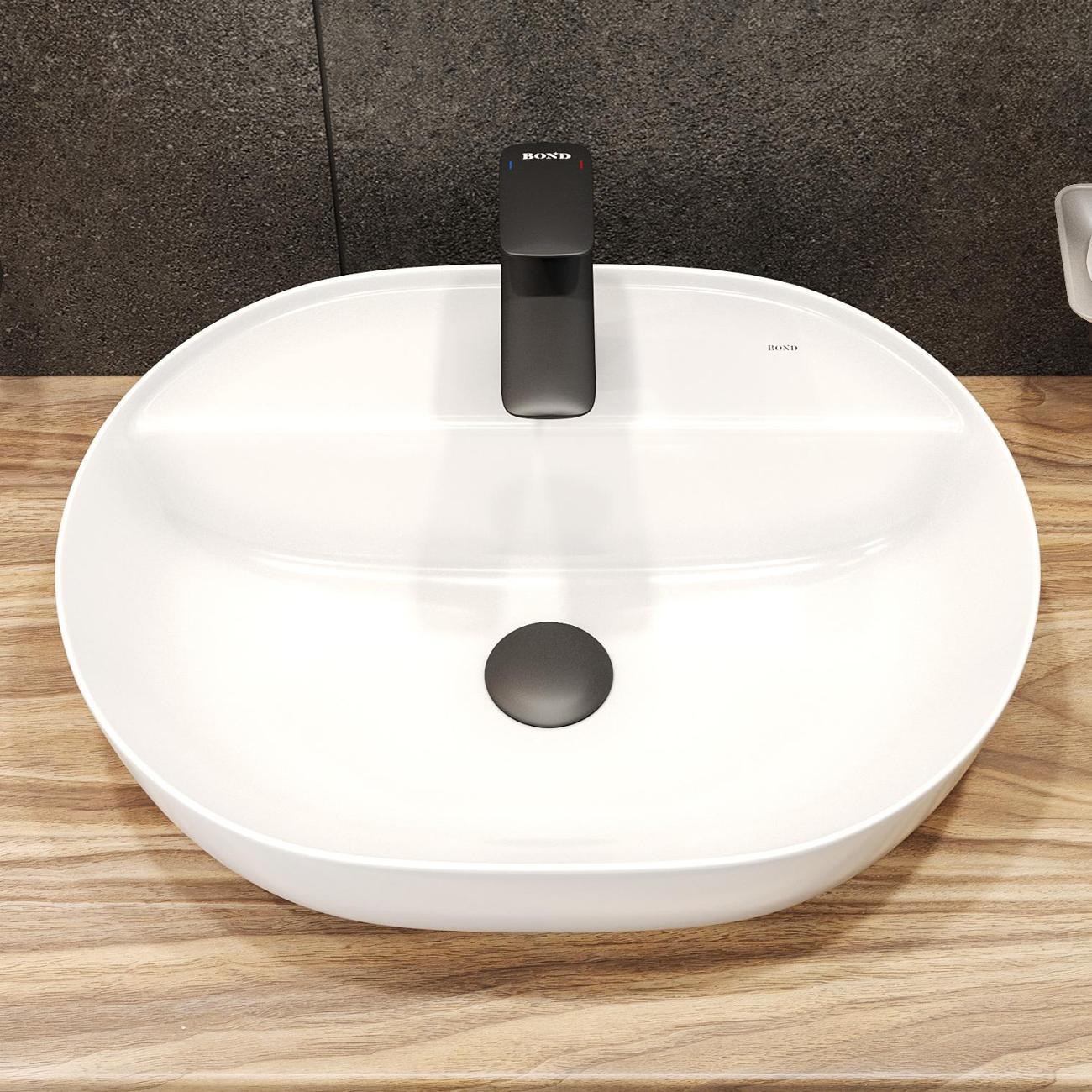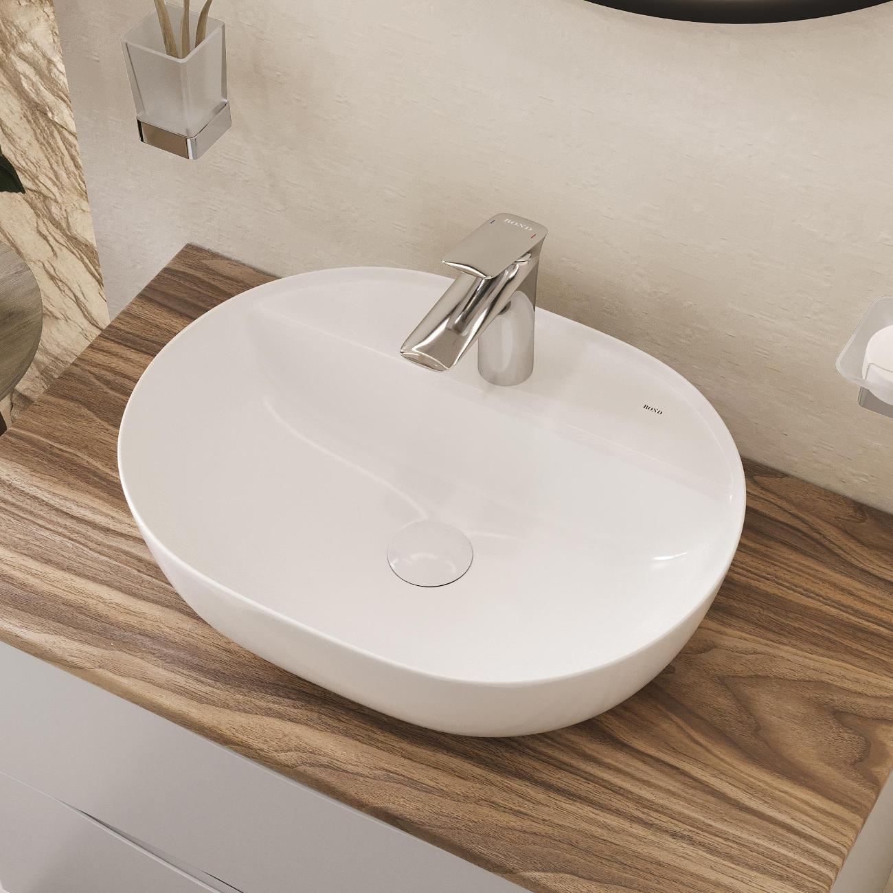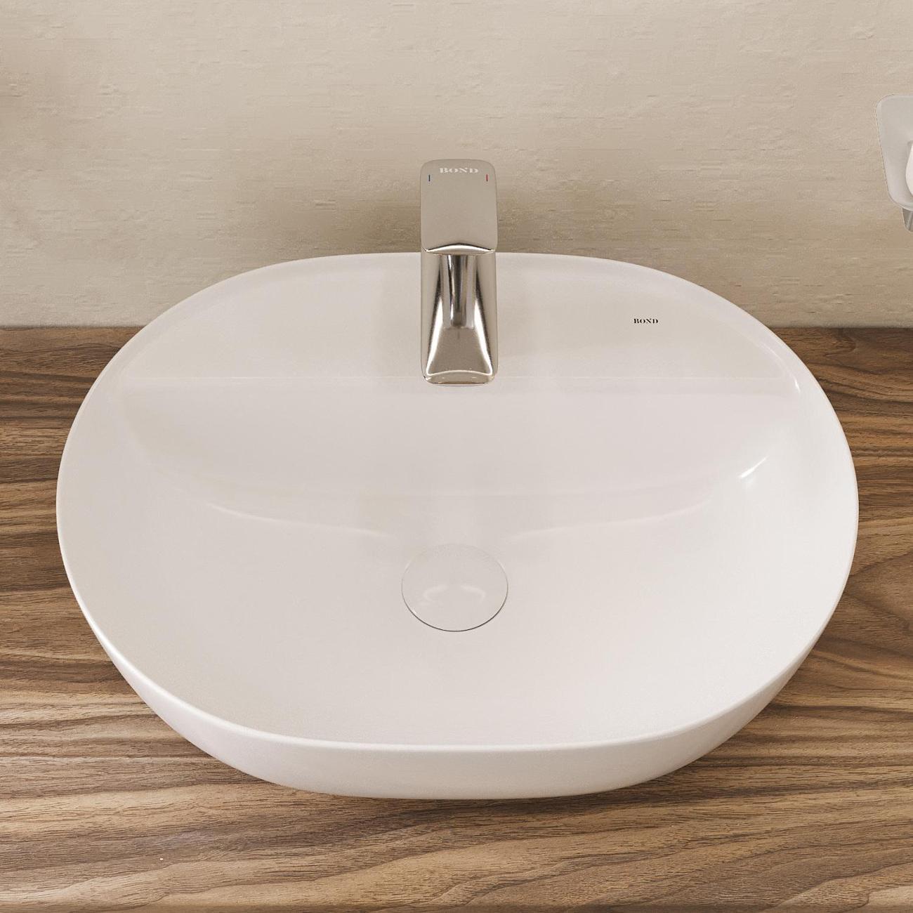 Раковина накладная прямоугольно-овальная 50*39*13,5см белая BOND Oval S01-500 с отверстием под смеситель имеет стильный дизайн и отлично смотрится в современном интерьере ванной комнаты. Раковина-чаша изготовлена из высококачественного сантехнического фарфора, покрытого утолщенным слоем стекловидной глазури, которая защищает поверхность от скапливания бактерий и выцветания, придает ей блеск и обеспечивает очень легкий уход за ней. Раковина овальная, ее внешняя обтекаемая форма не позволяет накапливаться пыли. Прекрасно сочетается с различными стилями интерьера и будет радовать Вас долгие годы. К данной раковине подходят донные клапаны без перелива BOND BV0100 или BV0105.