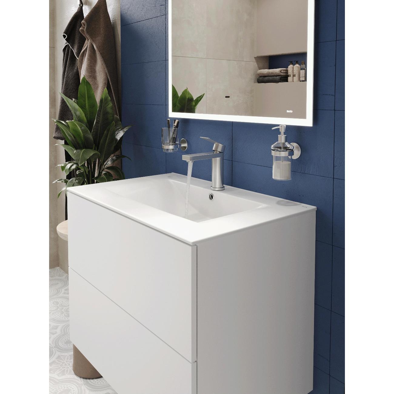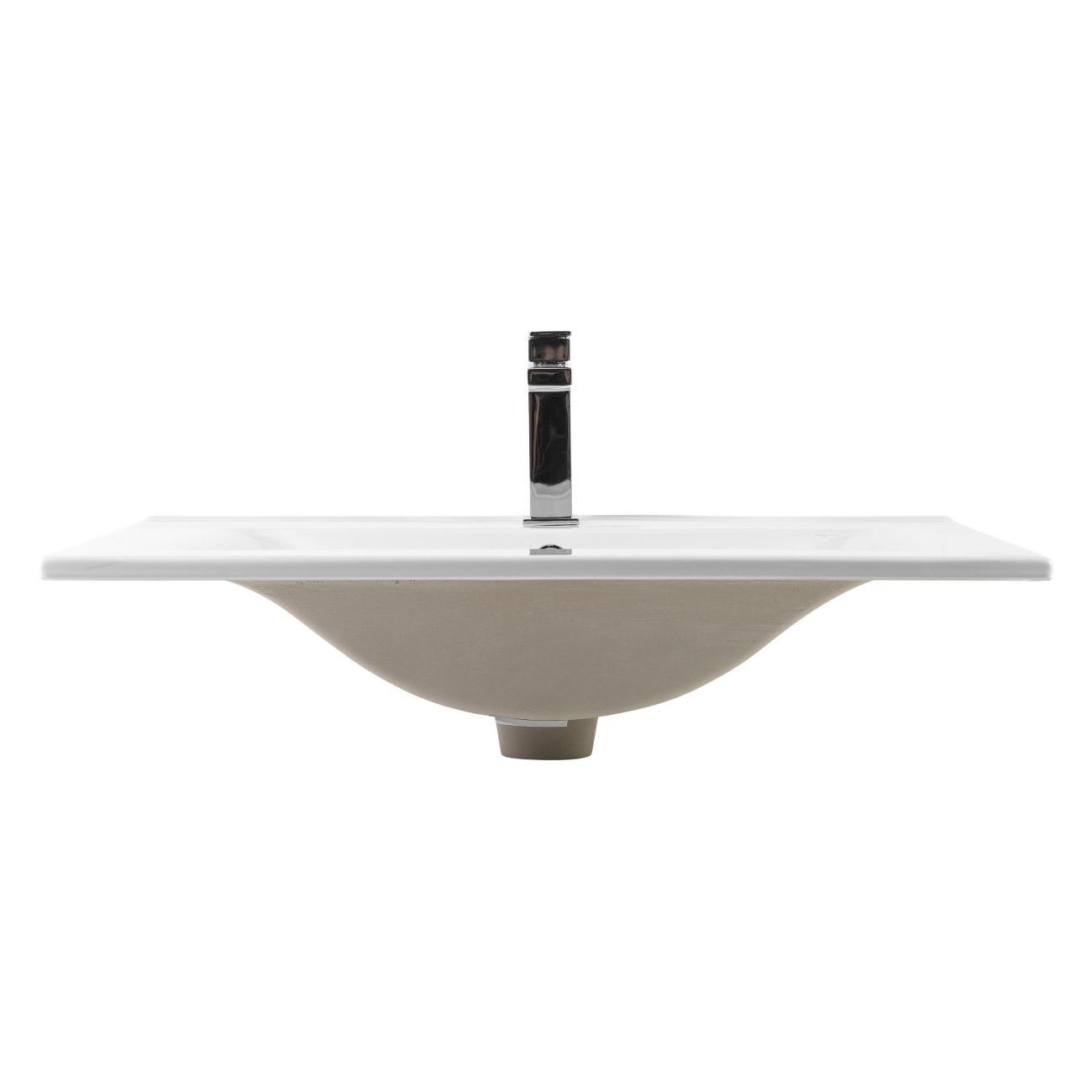 Раковина встраиваемая прямоугольная 70,5*46*17см белая BOND Cube S05-700 с переливом и отверстием под смеситель имеет стильный дизайн и отлично смотрится в современном интерьере ванной комнаты. Она изготовлена из высококачественного сантехнического фарфора, покрытого утолщенным слоем стекловидной глазури, которая защищает поверхность от скапливания бактерий и выцветания, придает ей блеск и обеспечивает очень легкий уход за ней. Прямоугольная врезная раковина имеет бортик в тыльной части, предотвращающий попадание воды в область примыкания к стене, а ее горизонтальная поверхность замечательно подходит для хранения туалетных принадлежностей. Раковина прекрасно сочетается с различными стилями интерьера и будет радовать Вас долгие годы. К данной раковине подходят донные клапаны с переливом BOND BV0200 или BV0205.