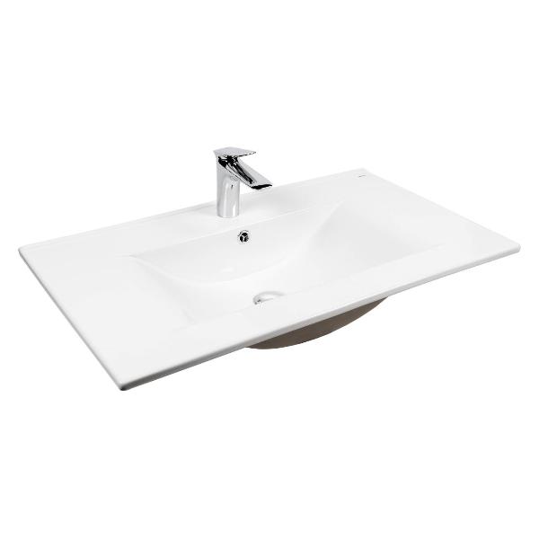 Раковина встраиваемая прямоугольная 81*46*17см белая BOND Cube S05-800 с переливом и отверстием под смеситель имеет стильный дизайн и отлично смотрится в современном интерьере ванной комнаты. Она изготовлена из высококачественного сантехнического фарфора, покрытого утолщенным слоем стекловидной глазури, которая защищает поверхность от скапливания бактерий и выцветания, придает ей блеск и обеспечивает очень легкий уход за ней. Прямоугольная врезная раковина имеет бортик в тыльной части, предотвращающий попадание воды в область примыкания к стене, а ее горизонтальная поверхность замечательно подходит для хранения туалетных принадлежностей. Раковина прекрасно сочетается с различными стилями интерьера и будет радовать Вас долгие годы. К данной раковине подходят донные клапаны с переливом BOND BV0200 или BV0205.