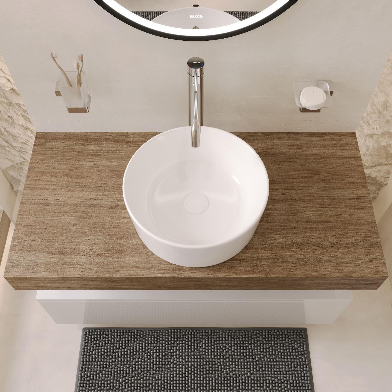 Раковина накладная круглая 39*39*15см белая BOND Circle S53-390 без отверстия под смеситель имеет стильный дизайн и отлично смотрится в современном интерьере ванной комнаты. Раковина-чаша изготовлена из высококачественного сантехнического фарфора, покрытого утолщенным слоем стекловидной глазури, которая защищает поверхность от скапливания бактерий и выцветания, придает ей блеск и обеспечивает очень легкий уход за ней. Раковина круглая, ее внешняя обтекаемая форма не позволяет накапливаться пыли. Прекрасно сочетается с различными стилями интерьера и будет радовать Вас долгие годы. К данной раковине подходят донные клапаны без перелива BOND BV0100, BV0105 и BV0188.