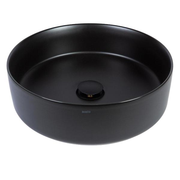 Раковина накладная круглая 39*39*15см черная матовая BOND Circle S53-398 без отверстия под смеситель имеет стильный дизайн и отлично смотрится в современном интерьере ванной комнаты. Раковина-чаша изготовлена из высококачественного сантехнического фарфора, покрытого утолщенным слоем стекловидной глазури, которая защищает поверхность от скапливания бактерий и выцветания, придает ей блеск и обеспечивает очень легкий уход за ней. Раковина круглая, ее внешняя обтекаемая форма не позволяет накапливаться пыли. Прекрасно сочетается с различными стилями интерьера и будет радовать Вас долгие годы. К данной раковине подходят донные клапаны без перелива BOND BV0100, BV0105 и BV0188.