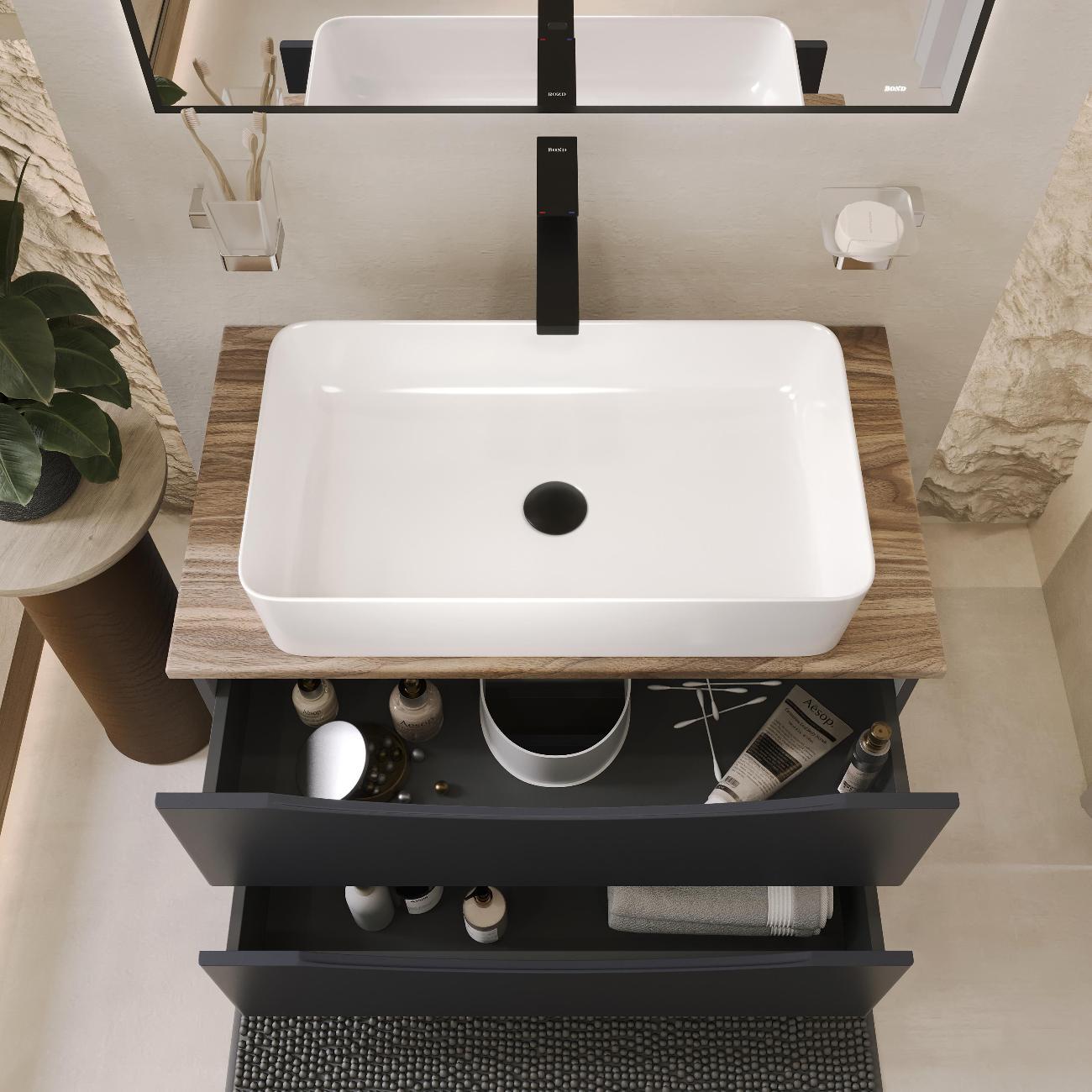 Раковина накладная прямоугольная 62*36*11см без перелива белая BOND Cube S54-620 без отверстия под смеситель имеет стильный дизайн и отлично смотрится в современном интерьере ванной комнаты. Раковина-чаша изготовлена из высококачественного сантехнического фарфора, покрытого утолщенным слоем стекловидной глазури, которая защищает поверхность от скапливания бактерий и выцветания, придает ей блеск и обеспечивает очень легкий уход за ней. Раковина прямоугольная с немного закругленными углами, ее внешняя обтекаемая форма не позволяет накапливаться пыли. Прекрасно сочетается с различными стилями интерьера и будет радовать Вас долгие годы. К данной раковине подходят донные клапаны без перелива BOND BV0100, BV0105 и BV0188.