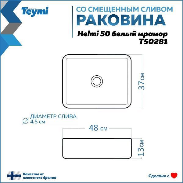 Вы можете купить Раковина для ванной Teymi Helmi 50 T50281 в магазинах М.Видео по доступной цене. Раковина для ванной Teymi Helmi 50 T50281: подробное описание, фото и отзывы реальных покупателей, характеристики, возможность скачать инструкции и подобрать аксессуары.