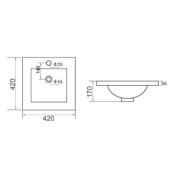 Orange B03-410w Встраиваемая сверху раковина - это элегантное и практичное решение для ванной комнаты. Она прекрасно впишется в любой интерьер благодаря своему стильному дизайну. Данная модель отличается благородным глянцевым белым цветом и четкими линиями - квадратная форма. Материал раковины фарфор отличается беспористой структурой, высокой прочностью и устойчивостью к различного рода загрязнениям и размножению бактерий, что позволит сохранить первоначальный вид изделия на долгие годы использования, гарантия от производителя 25 лет. Встроенный слив-перелив, с одним отверстием под смеситель, диаметр отверстия под смеситель - 35 мм, диаметр сливного отверстия - 45 мм. Модель встраивается сверху в столешницу или тумбу, монтаж не требует специальных навыков. Смеситель и донный клапан приобретаются дополнительно.