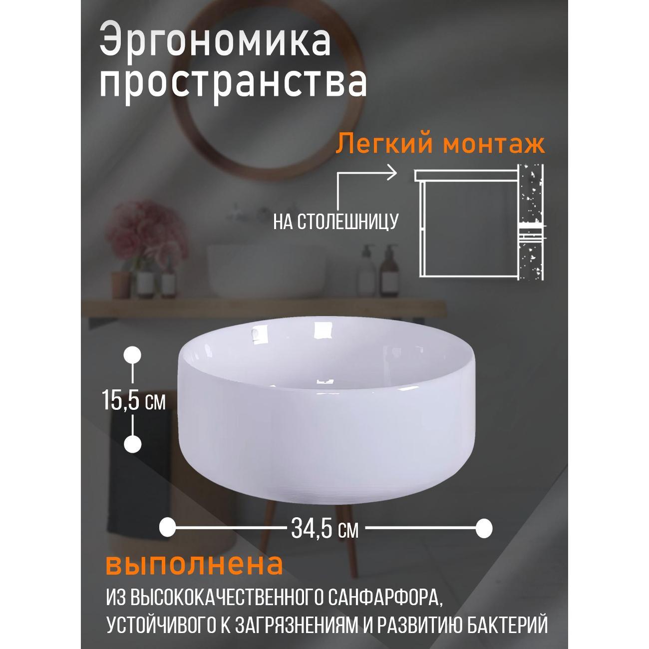 Orange B07-345W Накладная раковина - это элегантное и практичное решение для ванной комнаты. Она прекрасно впишется в любой интерьер благодаря своему стильному дизайну. Данная модель отличается благородным глянцевым белым цветом и плавными линиями - круглая форма. Материал раковины фарфор отличается беспористой структурой, высокой прочностью и устойчивостью к различного рода загрязнениям и размножению бактерий, что позволит сохранить первоначальный вид изделия на долгие годы использования, гарантия от производителя 25 лет. Диаметр сливного отверстия - 45 мм. Устанавливается на столешницу, монтаж не требует специальных навыков. Донный клапан приобретается дополнительно.