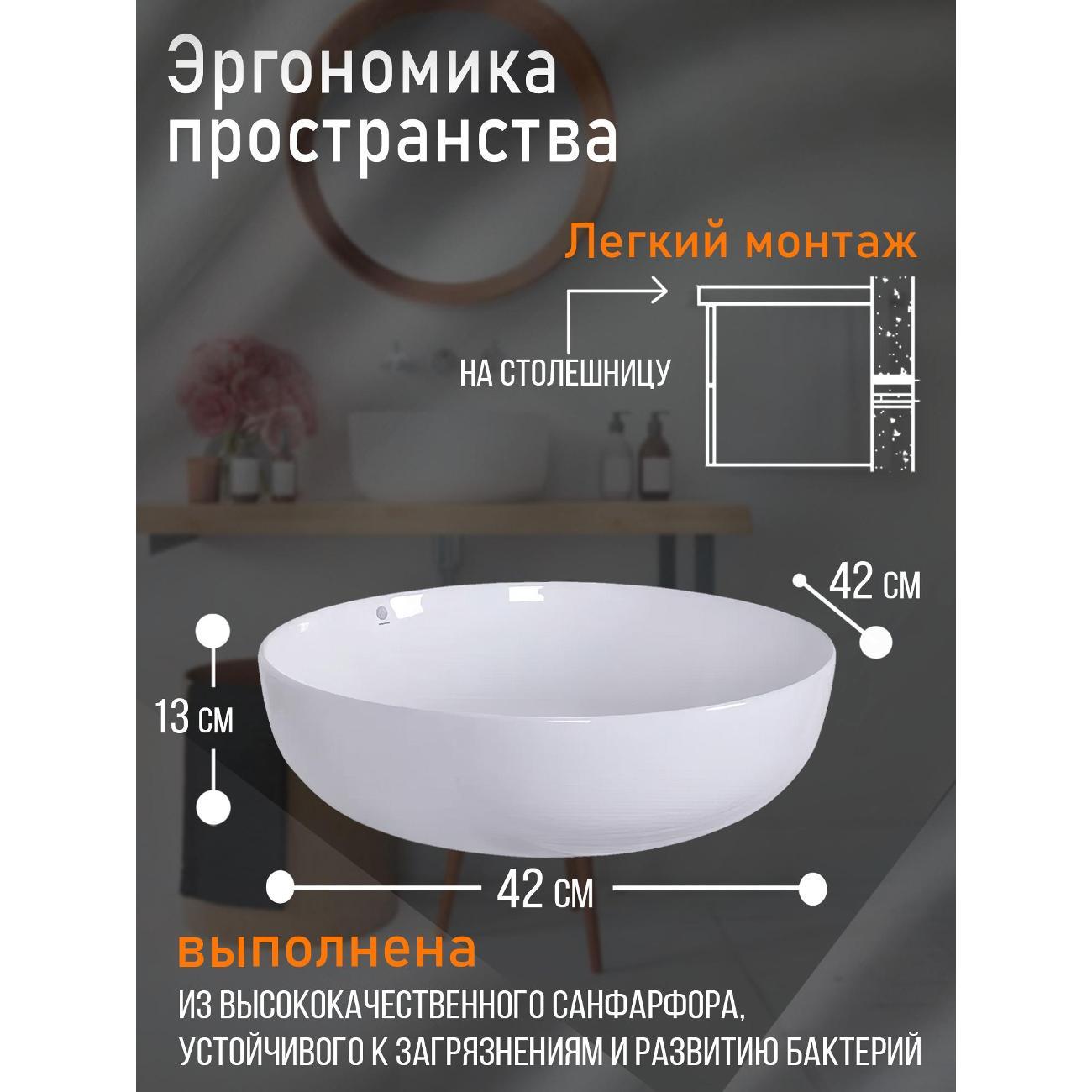 Orange B07-420W Накладная раковина - это элегантное и практичное решение для ванной комнаты. Она прекрасно впишется в любой интерьер благодаря своему стильному дизайну. Данная модель отличается благородным глянцевым белым цветом и плавными линиями - круглая форма. Материал раковины фарфор отличается беспористой структурой, высокой прочностью и устойчивостью к различного рода загрязнениям и размножению бактерий, что позволит сохранить первоначальный вид изделия на долгие годы использования, гарантия от производителя 25 лет. Диаметр сливного отверстия - 45 мм. Устанавливается на столешницу, монтаж не требует специальных навыков. Донный клапан приобретается дополнительно.