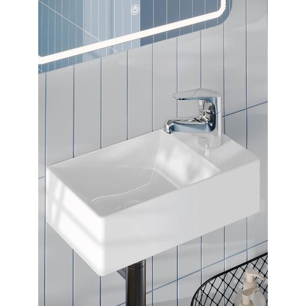 Agger ASH131375L Подвесная раковина левая (чаша слева) - это элегантное и практичное решение для ванной комнаты. Она прекрасно впишется в любой интерьер благодаря своему стильному дизайну. Данная модель отличается благородным глянцевым белым цветом и четкими линиями - прямоугольная форма. Материал раковины фарфор отличается беспористой структурой, высокой прочностью и устойчивостью к различного рода загрязнениям и размножению бактерий, что позволит сохранить первоначальный вид изделия на долгие годы использования, гарантия от производителя 25 лет. С одним отверстием под смеситель (расположение смесителя справа), диаметр отверстия под смеситель - 35 мм, диаметр сливного отверстия - 45 мм. Модель с универсальным применением - возможен как подвесной монтаж, так и монтаж на столешницу. Смеситель и донный клапан приобретаются дополнительно.