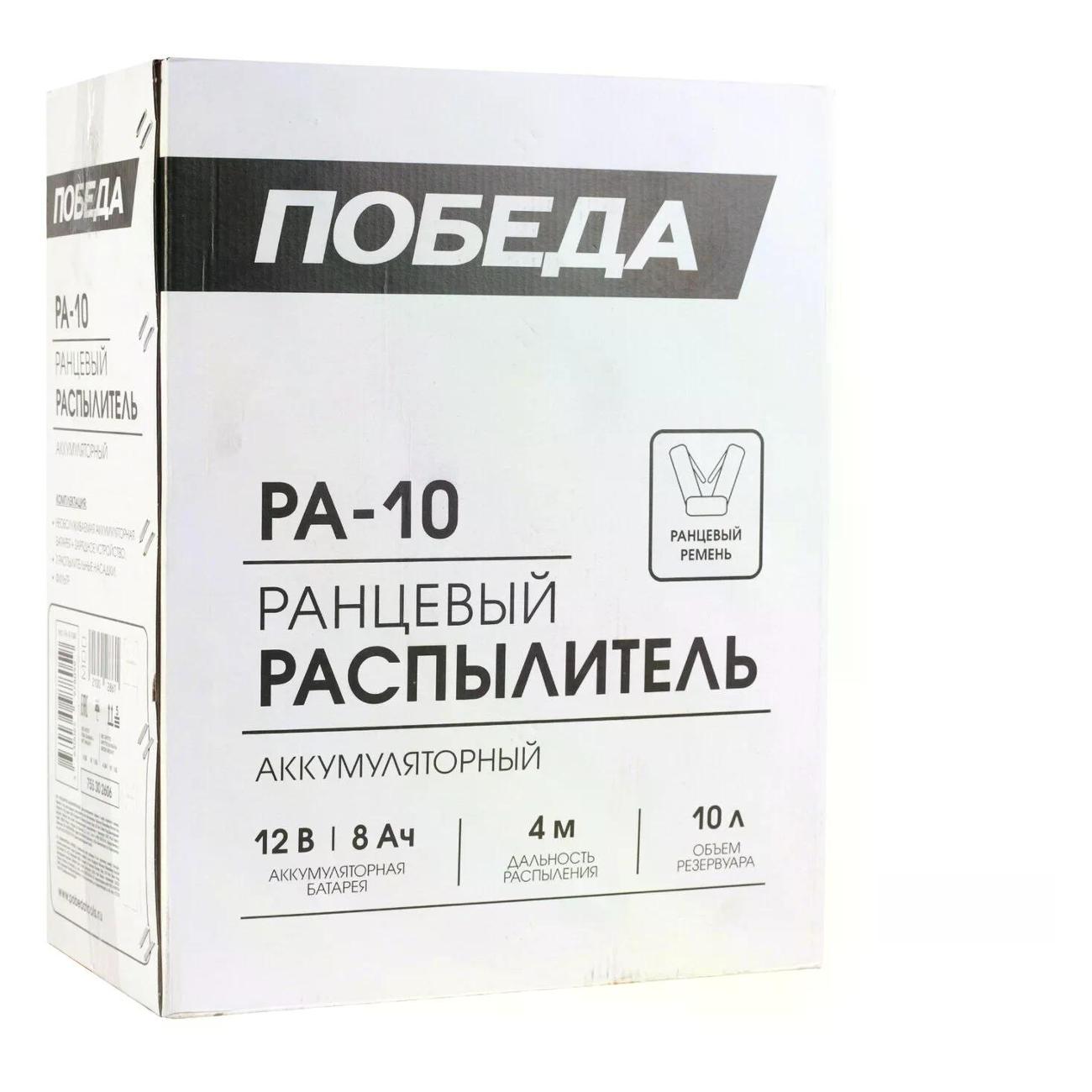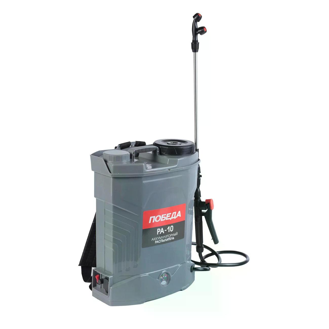Ранцевый опрыскиватель «Победа» PA-10 используется для ухода за растениями и защиты их от вредителей, санитарной обработки различных поверхностей. Корпус прибора сделан легкого и прочного пластика, ручка — из алюминия. Ремень снижает нагрузку на спинку и позволяет в течение длительного времени не испытывать усталость.