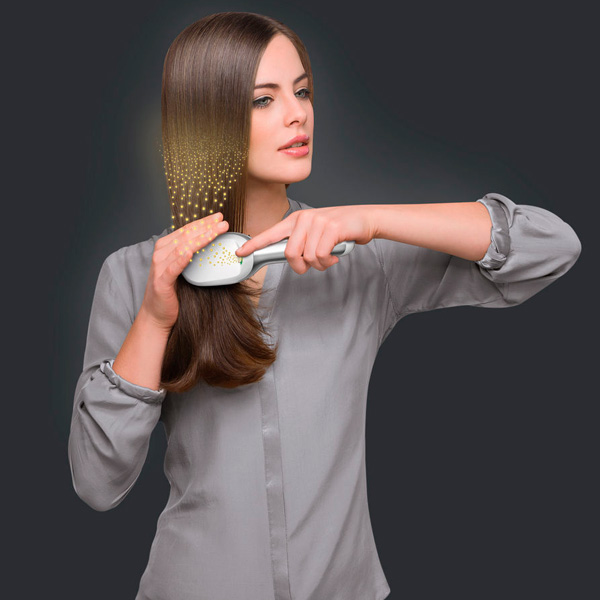 Braun BR750 – портативная расчёска с функцией ионизации, с помощью которой можно быстро и с минимальными усилиями сделать красивую укладку. Она снимает статическое электричество, обеспечивает безупречную гладкость волос и придаёт им здоровый, естественный блеск, а благодаря бесшовным зубцам без острых краёв уход за каждой прядью будет чрезвычайно бережным.